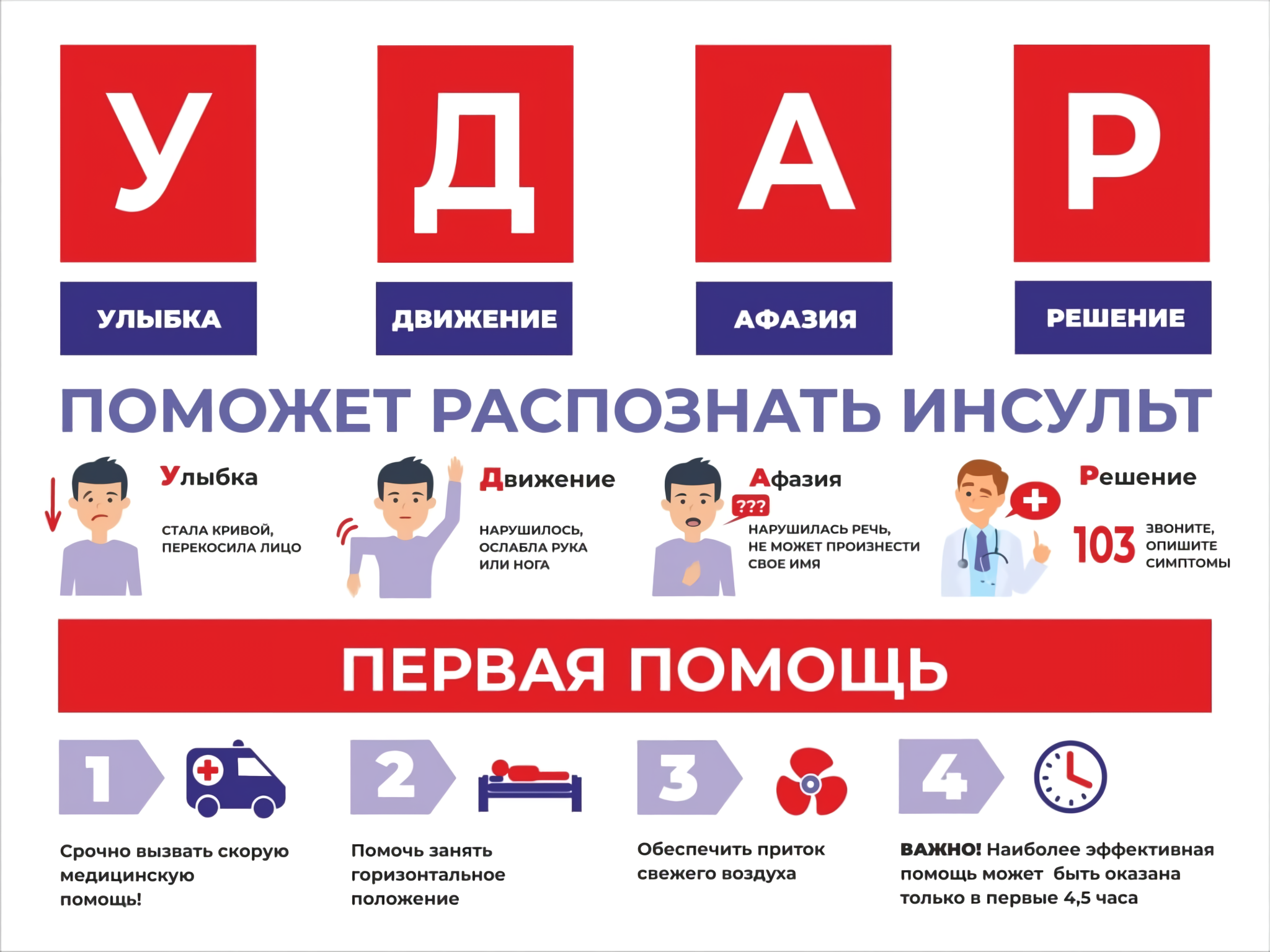 Инсульт не всегда легко распознать сразу, часто симптомам не придают значения и не обращаются за медицинской помощью в надежде на улучшение состояния. Состояние человека с инсультом необходимо очень быстро стабилизировать, нужно, как можно скорее вызвать скорую медицинскую помощь.