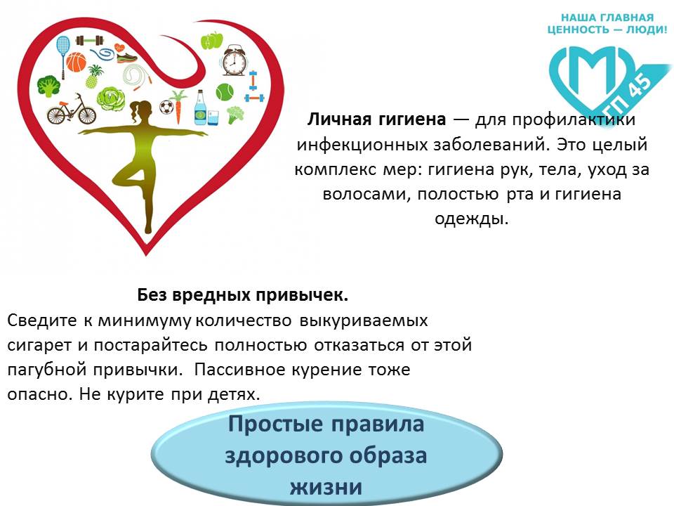 Это прежде всего профилактика ожирения, фактора риска многих болезней. Сбалансированная диета из фруктов, овощей, цельнозерновых продуктов, постного мяса и нежирных молочных продуктов важна в любом возрасте. Откажитесь от еды всухомятку, от перекусов фастфудом.